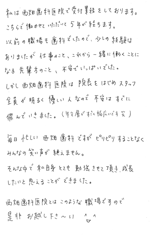 受付先輩スタッフは、西畑歯科医院をこう思っています!!